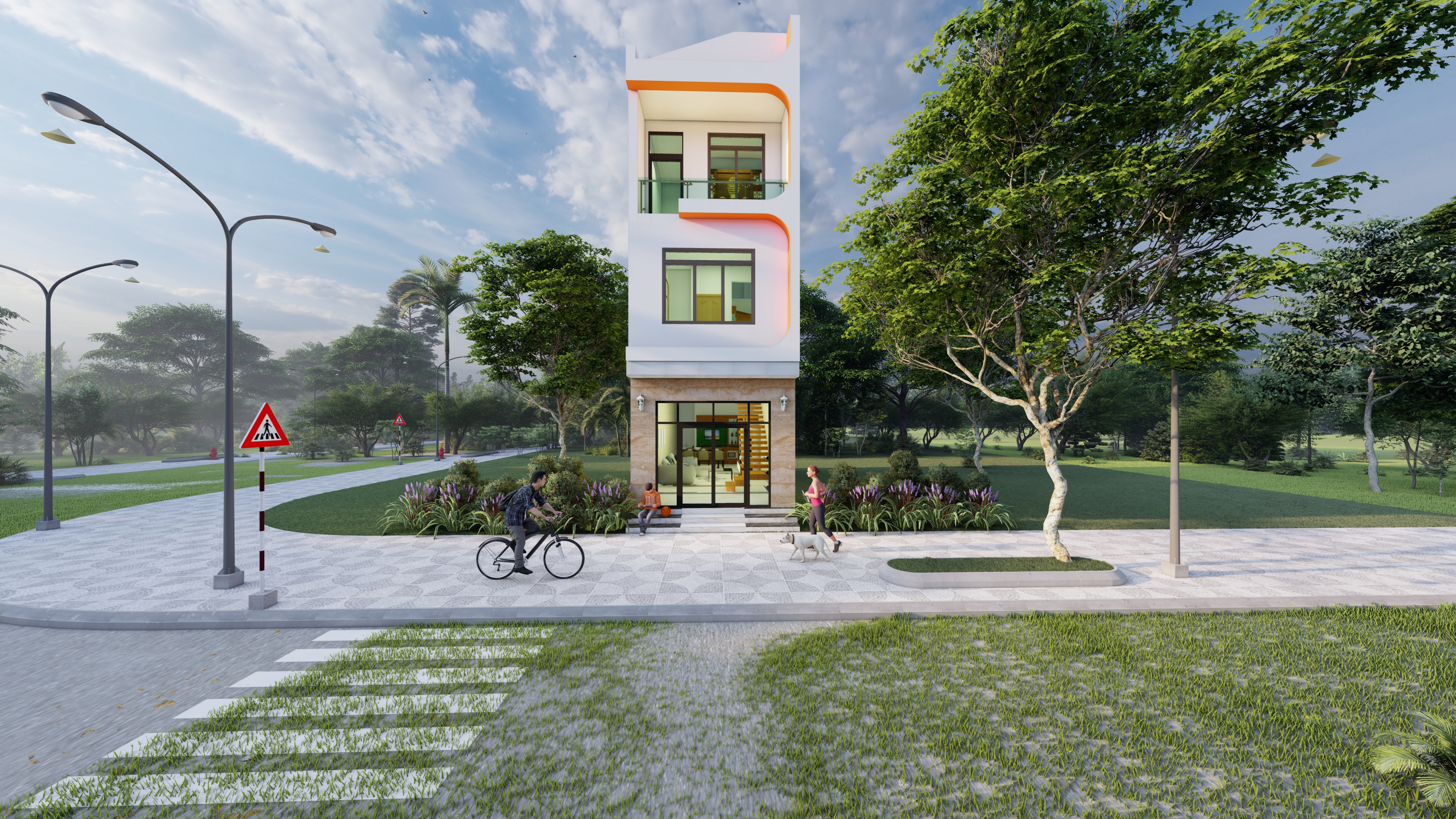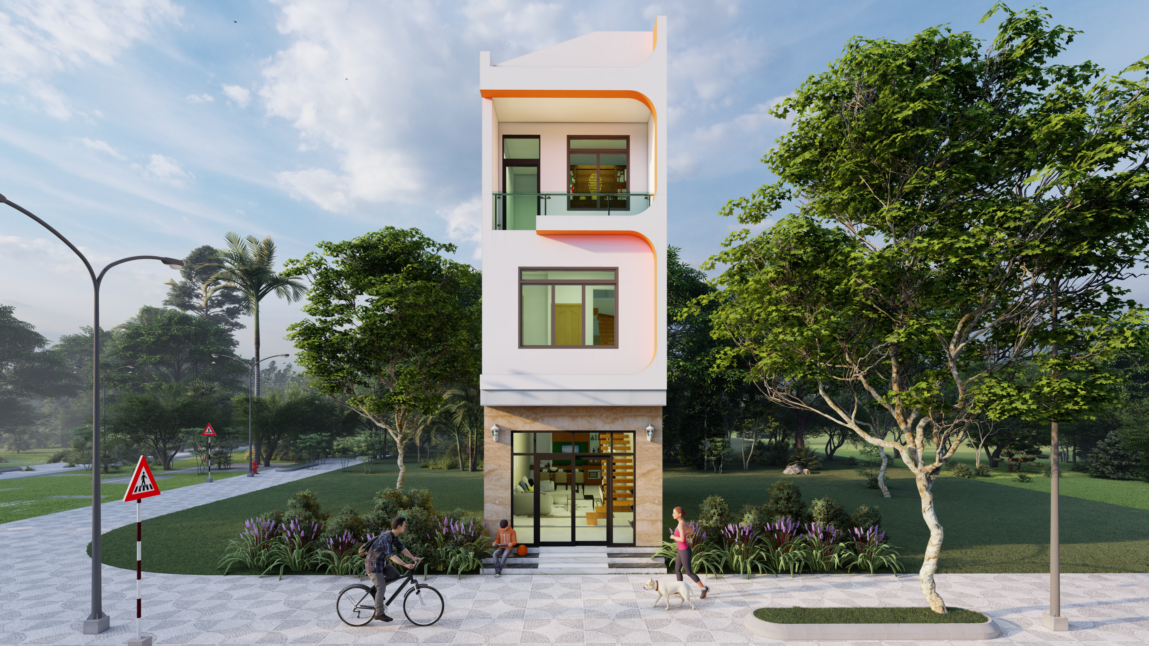 Phối cảnh 3D mẫu nhà ống hiện đại 3 tầng