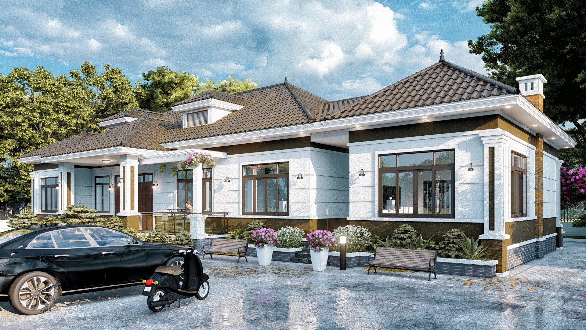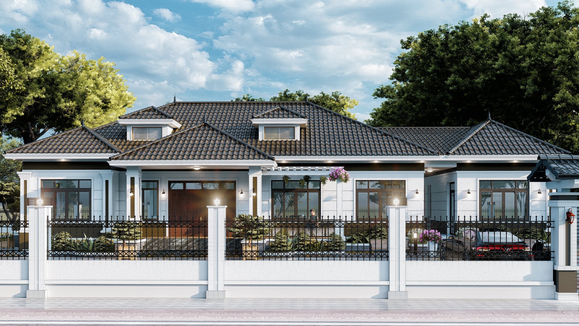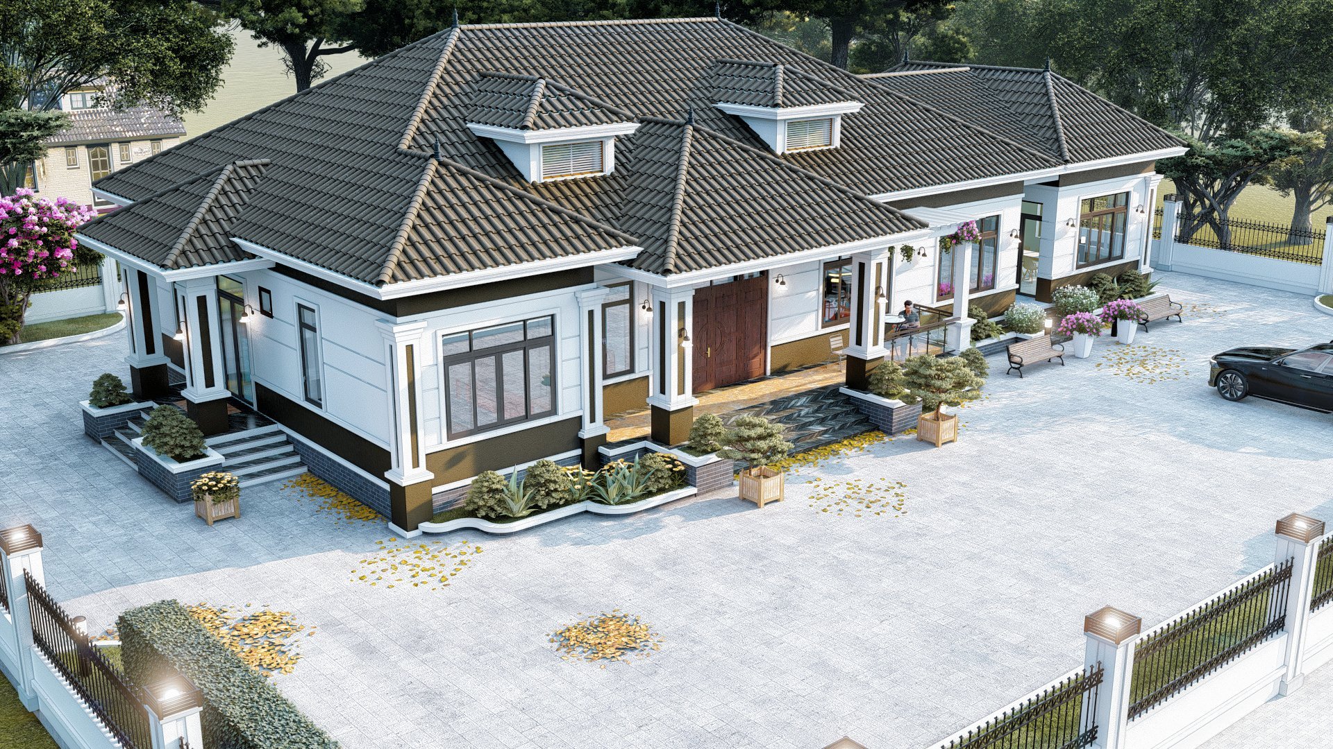 Hòa quyện với không gian thiên nhiên bởi những bồn hoa, cây cảnh tạo sức sống tươi mới cùng với cái nhìn trẻ trung. Nó đóng vai trò giúp gia chủ có thể kích thích nguồn năng lượng tích cực nhờ vào môi trường sống xanh này.