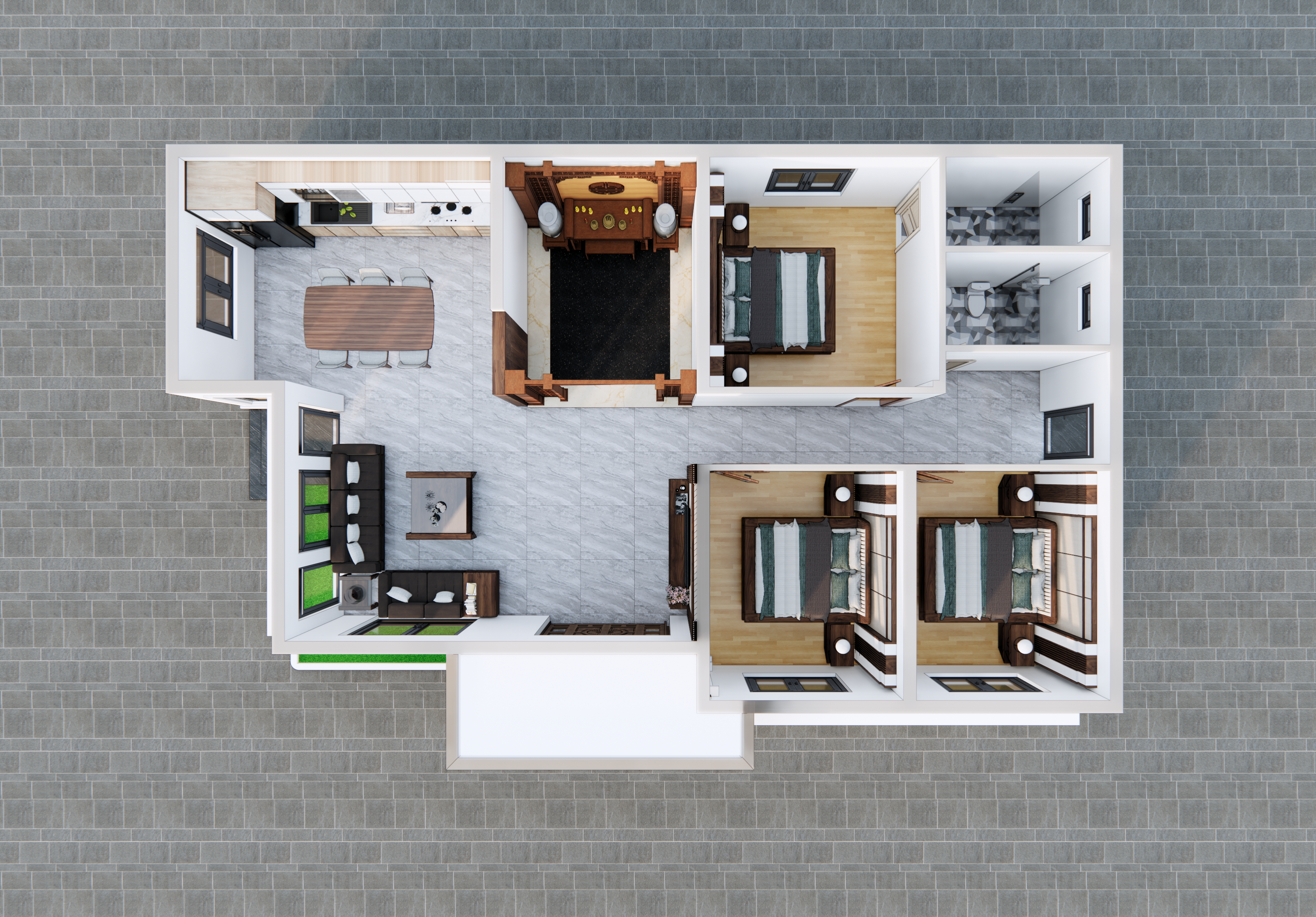 Mặt cắt công năng mẫu nhà vườn cấp 4