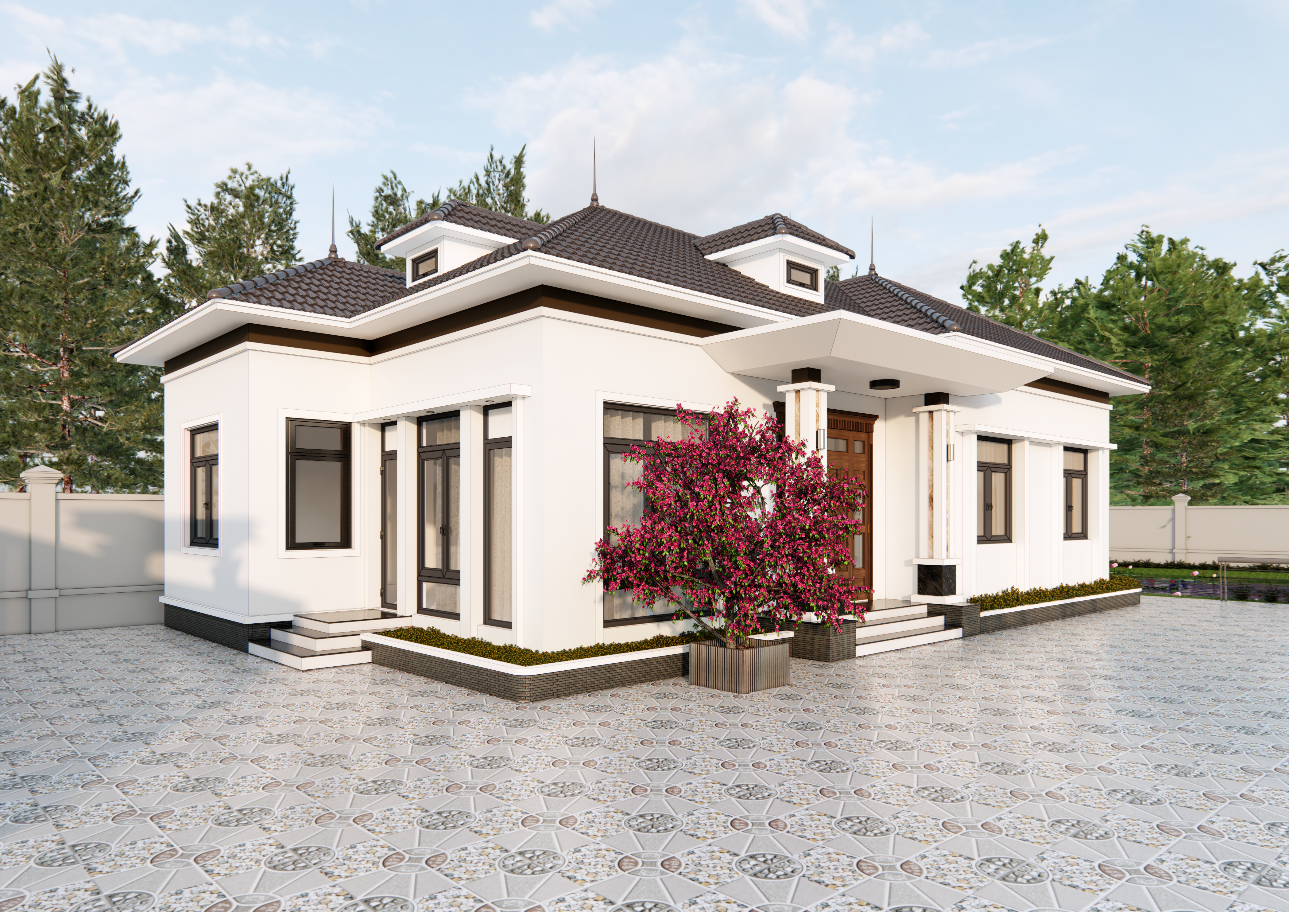Phối cảnh nhà vườn cấp 4 mái Nhật